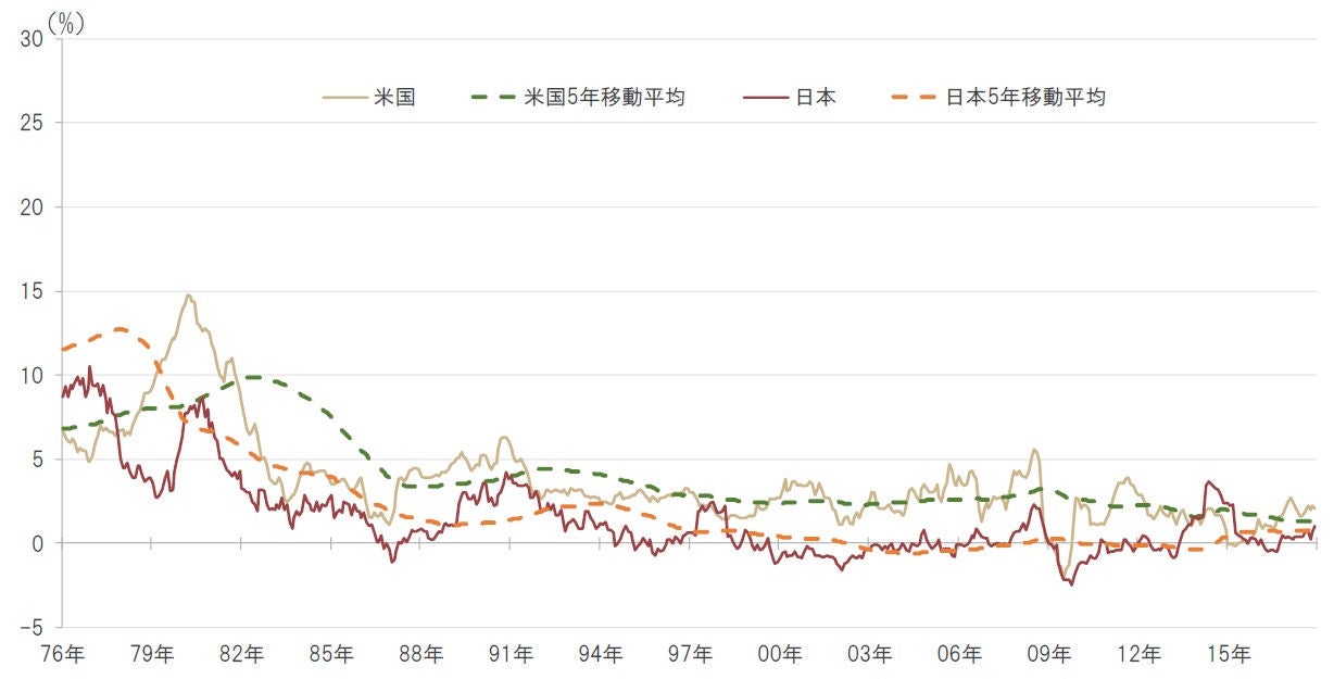 1980年代後半より物価の変動性が小さくなり、2017年ごろまで低位で安定的に推移しましたが、これは主にグローバリゼーションの進展が影響していたと考えられます。