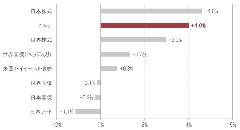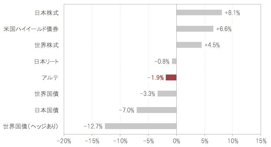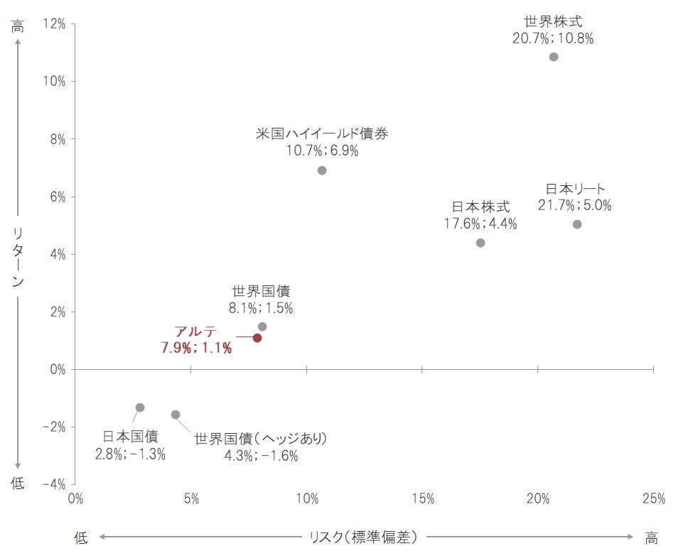 アルテの設定来の年率のリスク(標準偏差)とリターンはそれぞれ7.9%、1.1%となっています。
