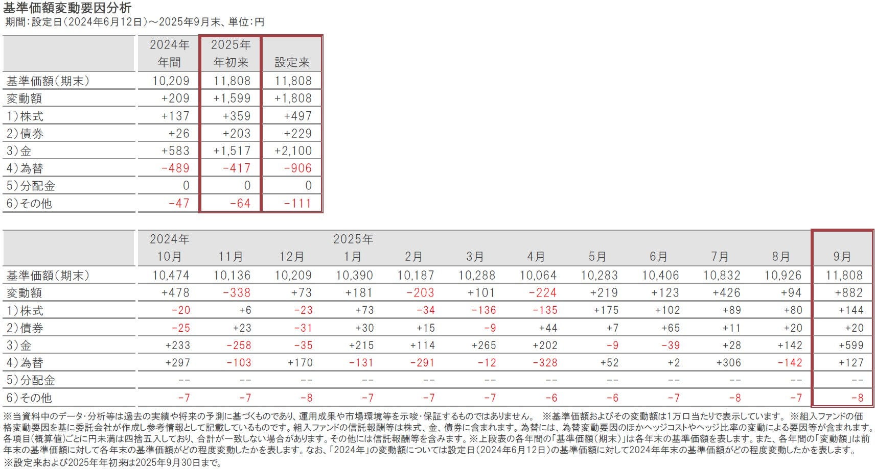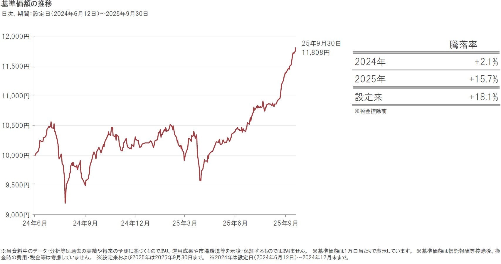 2025年9月30日の当ファンドの基準価額は、前月末比882円上昇(+8.1%)の11,808円となりました。