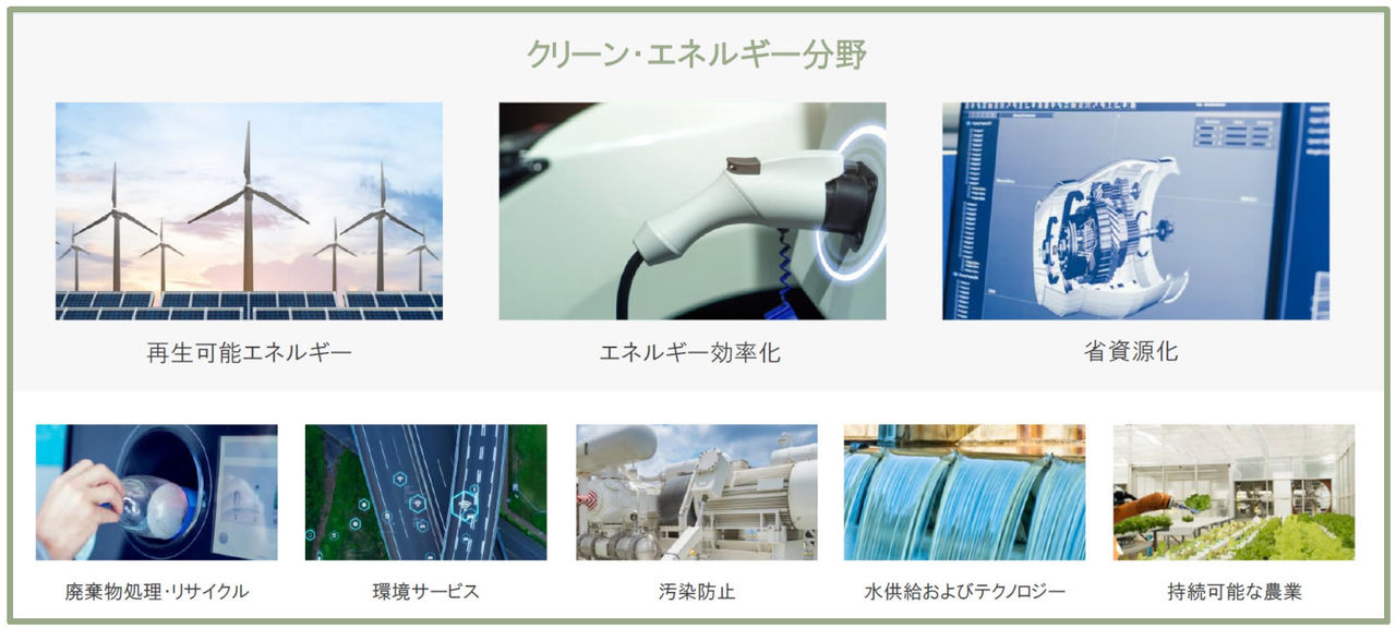 ● 当ファンドは、クリーン・エネルギー分野(再生可能エネルギー、エネルギー効率化、省資源化)に注目しており、当該分野における課題解決に貢献する企業を選別して投資