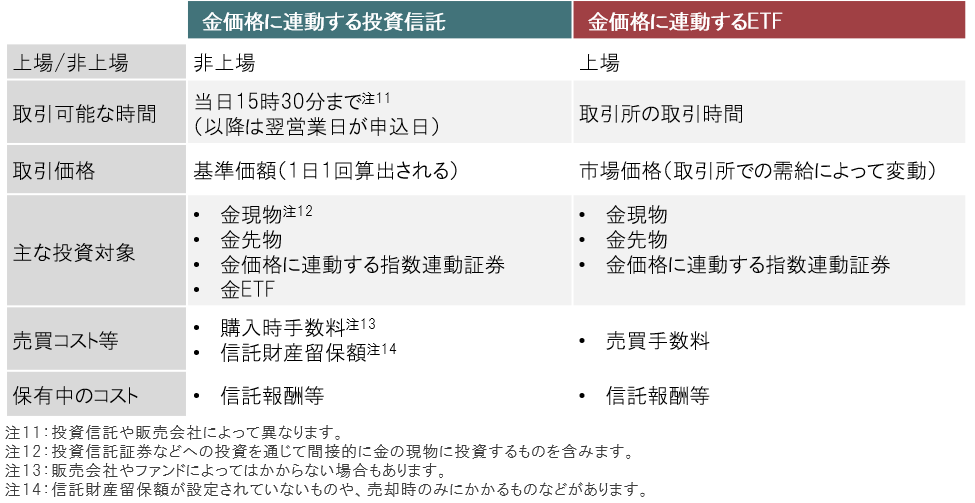 ■ 金価格に連動する投資信託とETFの比較