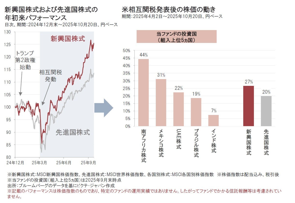 ■ 新興国株式のパフォーマンスは、米国の相互関税発表後も先進国株式を上回る