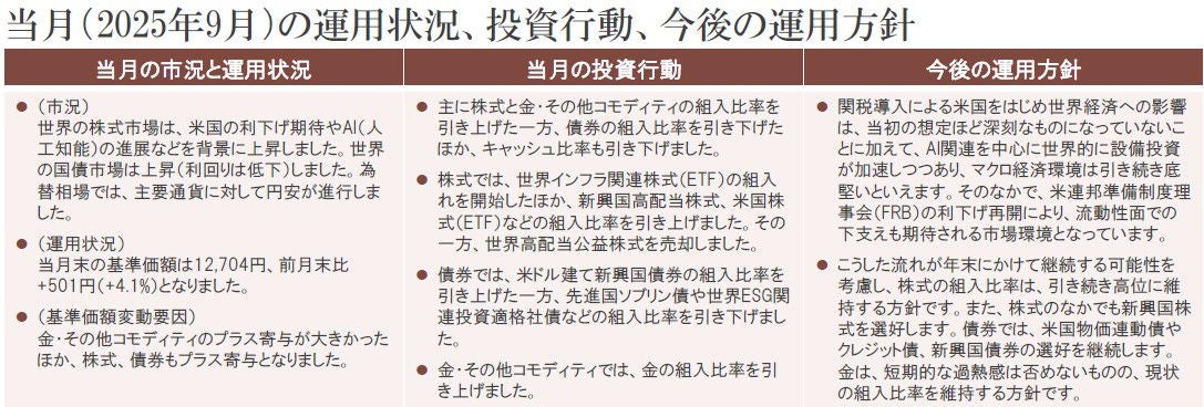 当月末の基準価額は12,704円、前月末比+501円(+4.1%)となりました。