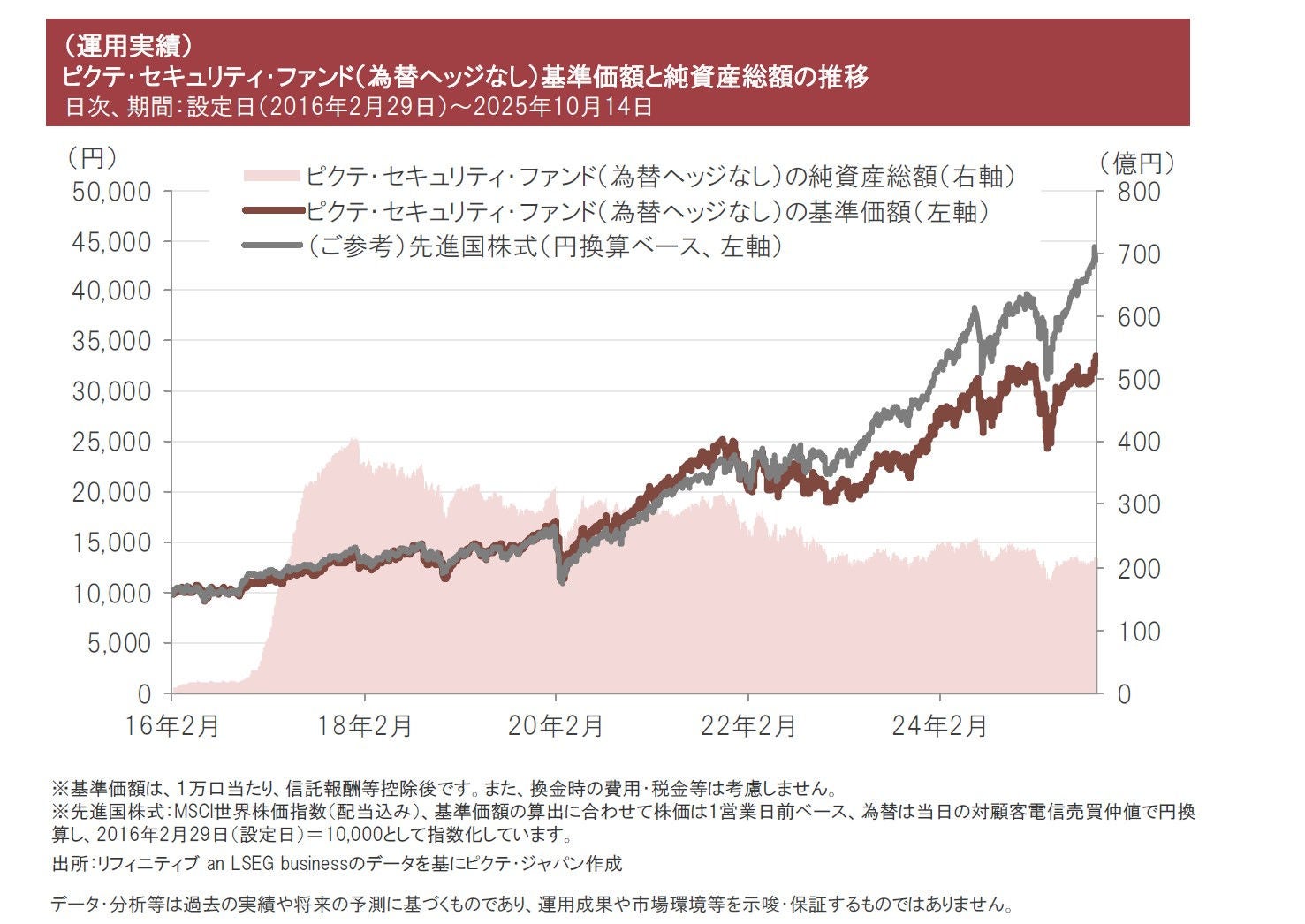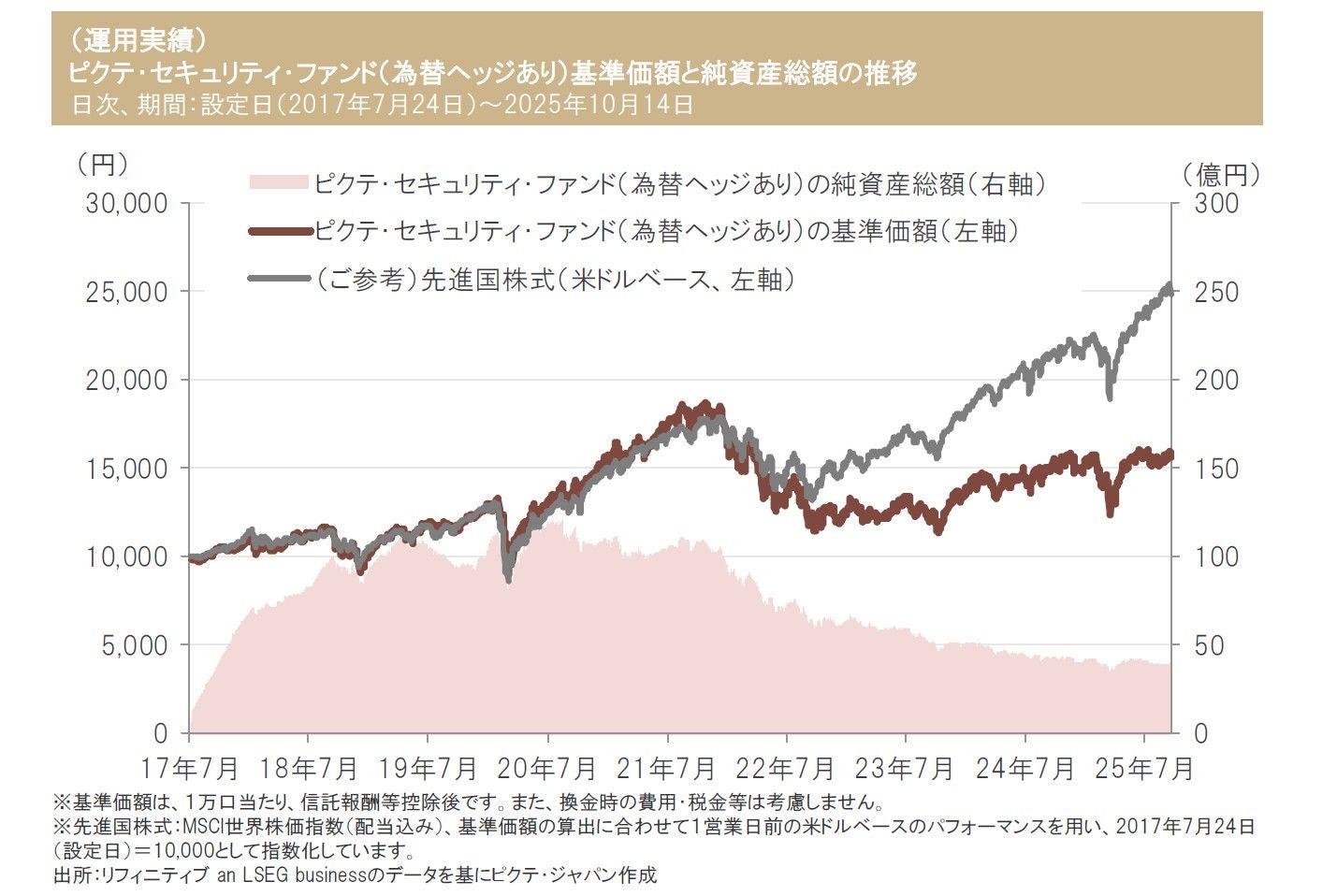 ピクテ・セキュリティ・ファンド(為替ヘッジあり)は2017年7月24日、ピクテ・セキュリティ・ファンド(為替ヘッジなし)は2016年2月29日に運用が開始されました。また、当ファンドと同様の運用を行うルクセンブルグ籍の類似ファンドは、2006年10月31日に設定され、20年弱の運用実績があります。