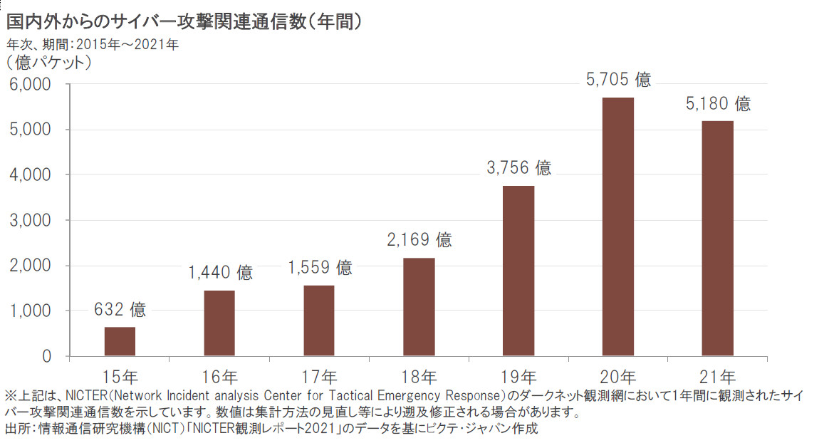 特に足元では、ロシアによるウクライナへの軍事侵攻をはじめ、地政学リスクが高まっていることなどを背景に、サイバー攻撃が増加しています。サイバーセキュリティの重要性は改めて注目されており、サイバーセキュリティを含む情報技術関連投資は今後も増加基調が続くと予想されます。