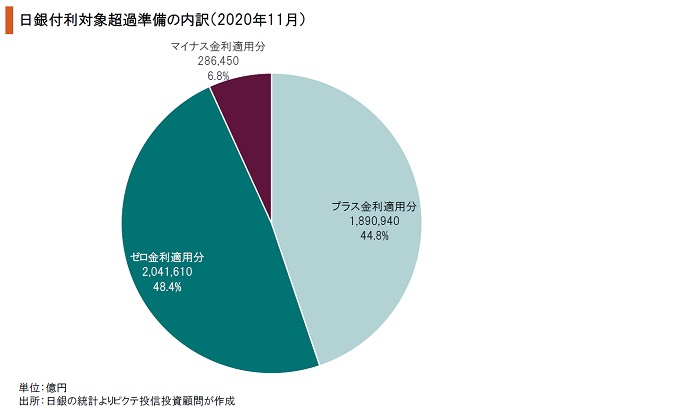 日銀はバランスシートを急拡大させたものの、「2%の物価目標」へ向け機能したとは言い難い。国債購入や企業金融を通じて日銀が市中に供給した流動性のうち、昨年11月末現在で約3分の2に相当する80兆9,989億円が当座預金の超過準備として日銀に留まったからだ。超過準備の総額は480兆8,220億円、日本の名目GDPに匹敵する規模に達しようとしている。
