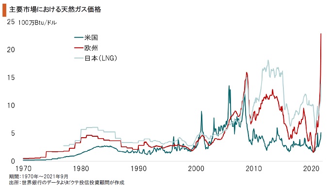 世界のエネルギー市場では、天然ガス、石油、石炭の価格が急上昇している。新型コロナ禍からの経済活動再開で需要が回復しているからだ。加えて、温暖化抑止へ向けた脱化石燃料の動きから、供給国・事業者が生産維持の投資を抑制していることも要因ではないか。直ぐに化石燃料依存を変えられるわけではなく、価格支配力が売り手主導になっているようだ。