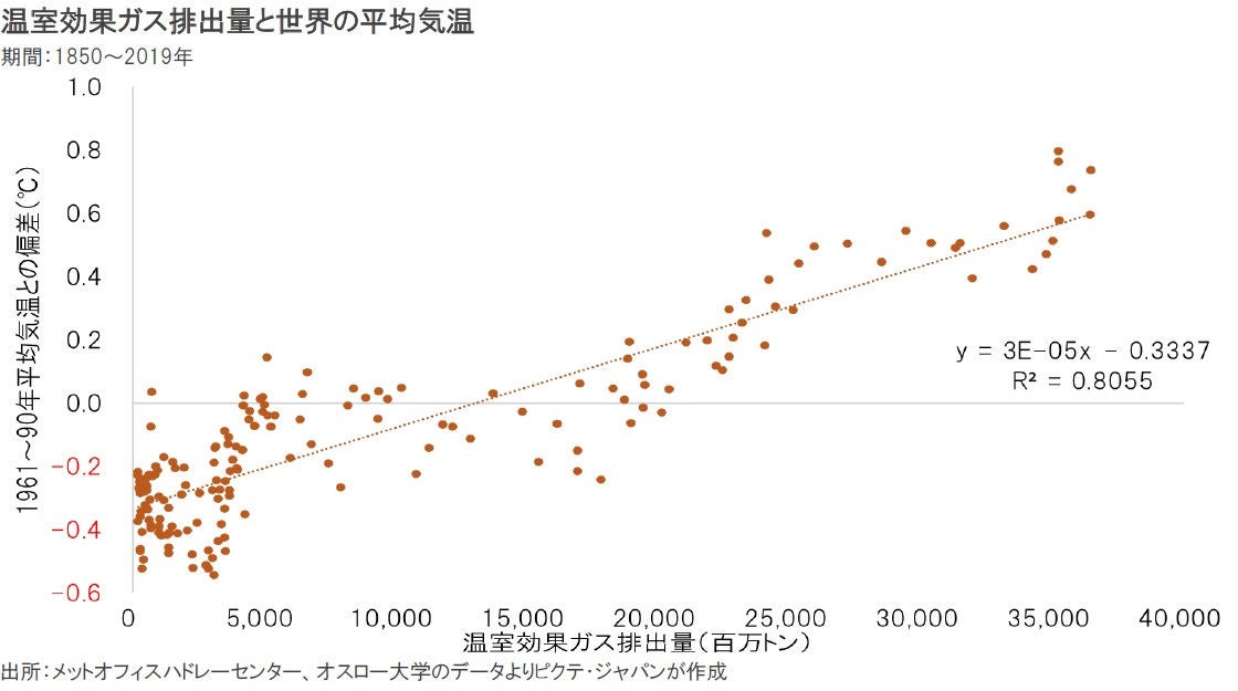 ■ 統計的に正の相関関係が成立する排出量と気温