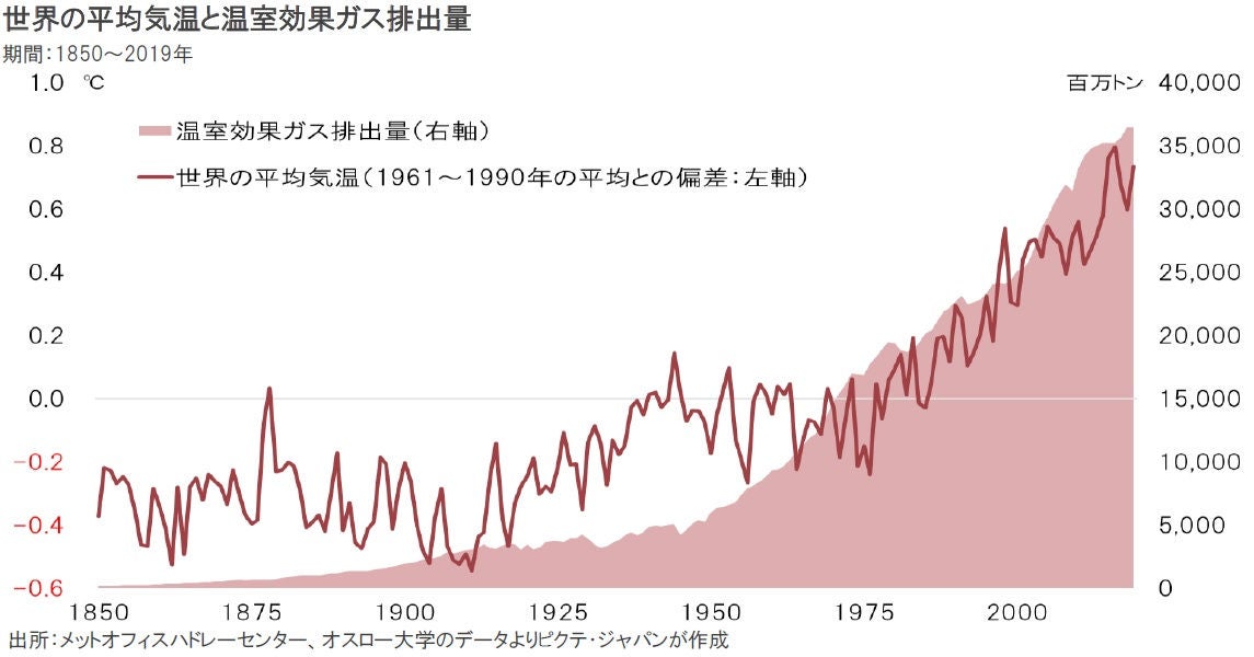 ■ 世界の気温は温室効果ガス排出量に連動して増加