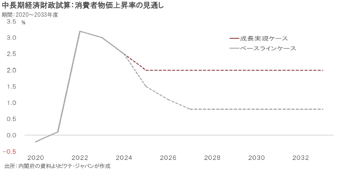 ■ 成長実現ケースでは長期的に2%の物価上昇率を想定