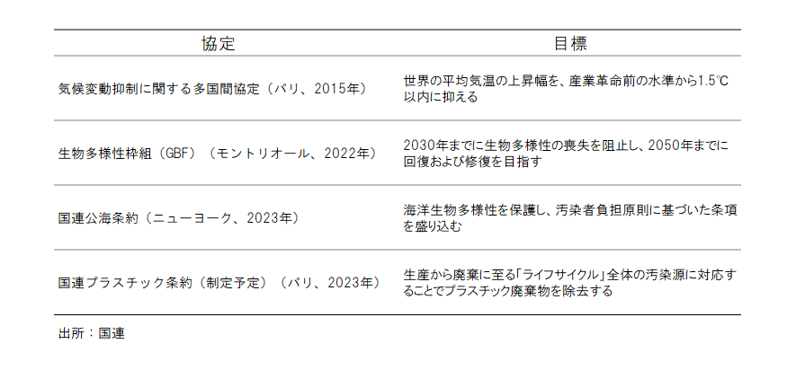合意に至るまでに何十年もの年月を要した国際協定が具体化しつつあることは、喫緊の環境課題である自然の劣化の阻止を政策立案者がどう捉えているかを反映していると考えます。