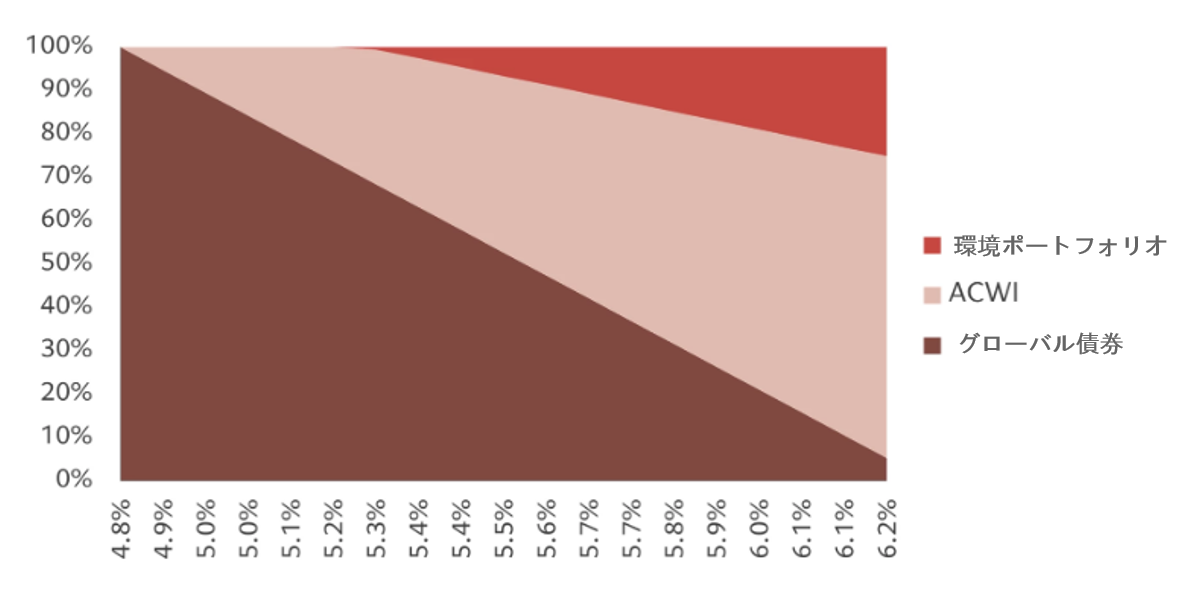 グローバル債券・株式ポートフォリオに環境テーマ株式を追加した場合の有効フロンティア上における最適配分(各目標リターン別)