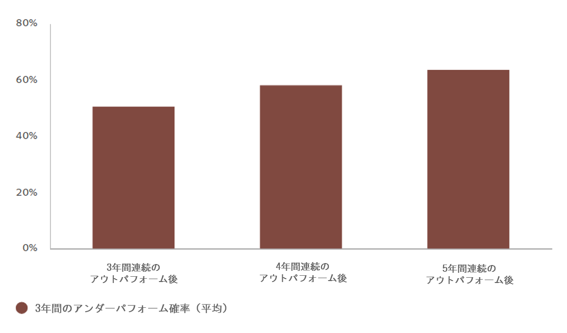 米国株式のアウトパフォーム期間後1年、2年、3年におけるアンダーパフォーム確率