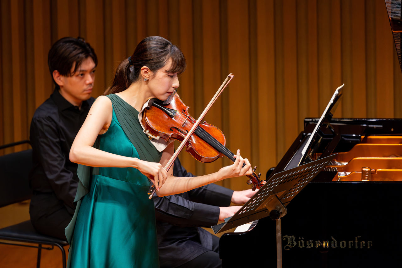 2024年8月28日、銀座王子ホールにおいて荒井里桜さん2年目のパトロネージュ・コンサートが開催されました。本コンサートは昨年同様、荒井里桜さんご自身が演奏曲を選び、パトロネージュ活動を応援していただいている皆さんにご自身の成長を表現する場となりました。本コンサートは『初秋の調べ 荒井里桜とめぐる音楽の風景』と題し、ドボルザークとベートーヴェンを主体に構成されたプログラムとなりました。昨年「ロマン派からバロック派の音楽にチャレンジしたい」という課題をインタビューで表明しましたが、チャレンジの途中にご自身がまだまだ触れなくてはならない表現や技法と出会いバロック音楽に通じるこれらの曲を選曲し演奏をいたしました。